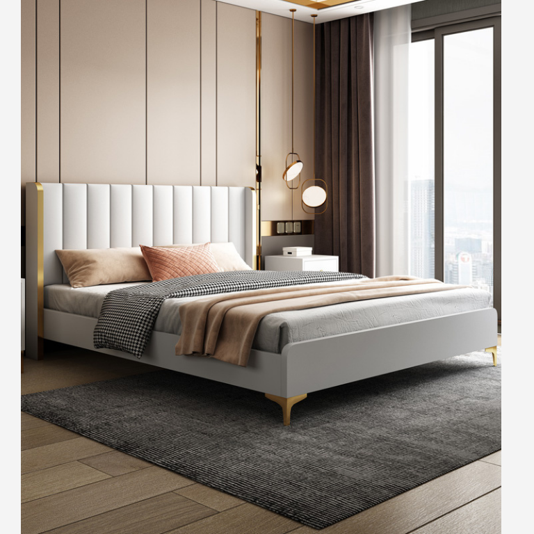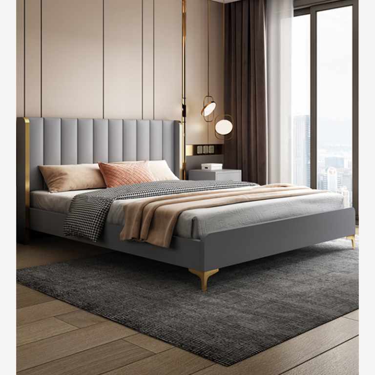 Bed: Upholstered in high-quality fabric/leatherette with vertical stitching.