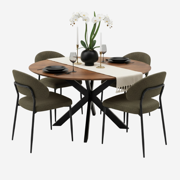 Bexy Oval Dining Table featured with Acacia wood tabletop and iron legs. With this modern look Edge Dining table can match a range of design styles, from contemporary, modern, Nordic to chic, minimalist or artistic design.