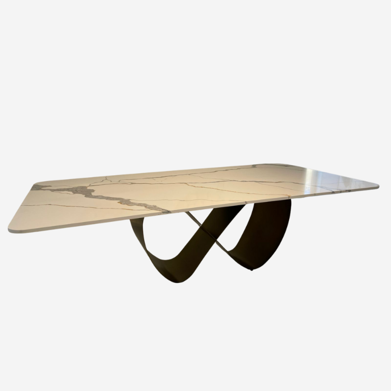The Ibiza Marble Dining Table features lines that evoke absolute elegance and Luxury. The Marble shades contrast with the playfulness of the leg structure, creating a uniquely designed table.