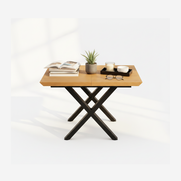 Manhattan coffee table is truly a beautiful, unique and modern design of European Origin. Natural Solid Oak top with astonishing 26 mm thickness, sitting on crossed metal coated crossed legs. Each counter top exhibits unique grains that adds to the character of this exceptional statement piece. Counter tops are finished with wax for protection and durability preventing stains. Exclusively Designed for Crate & Crafts.