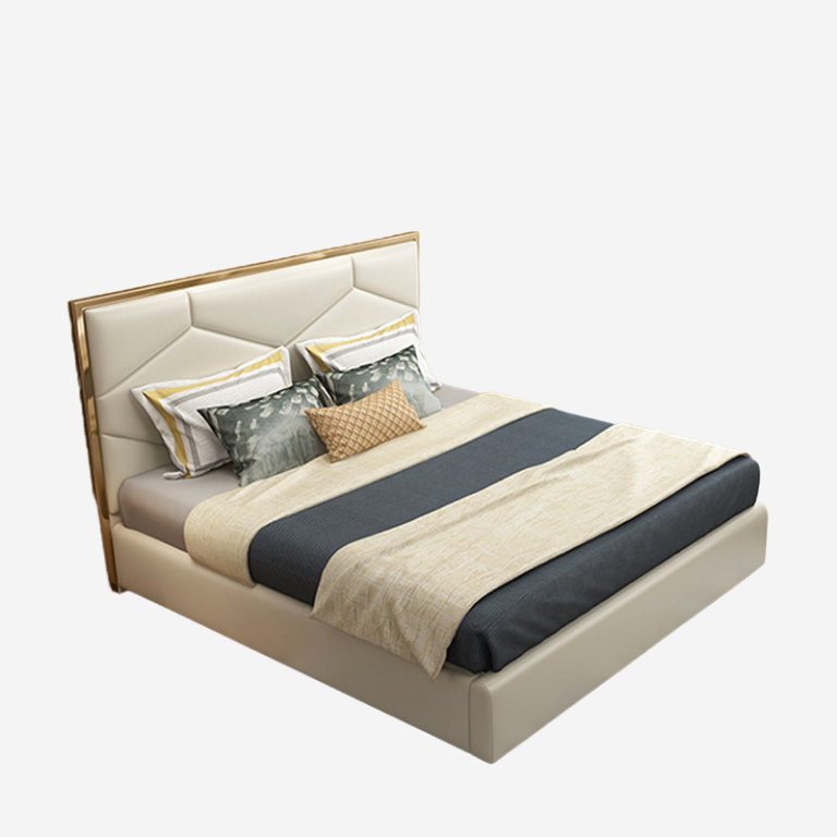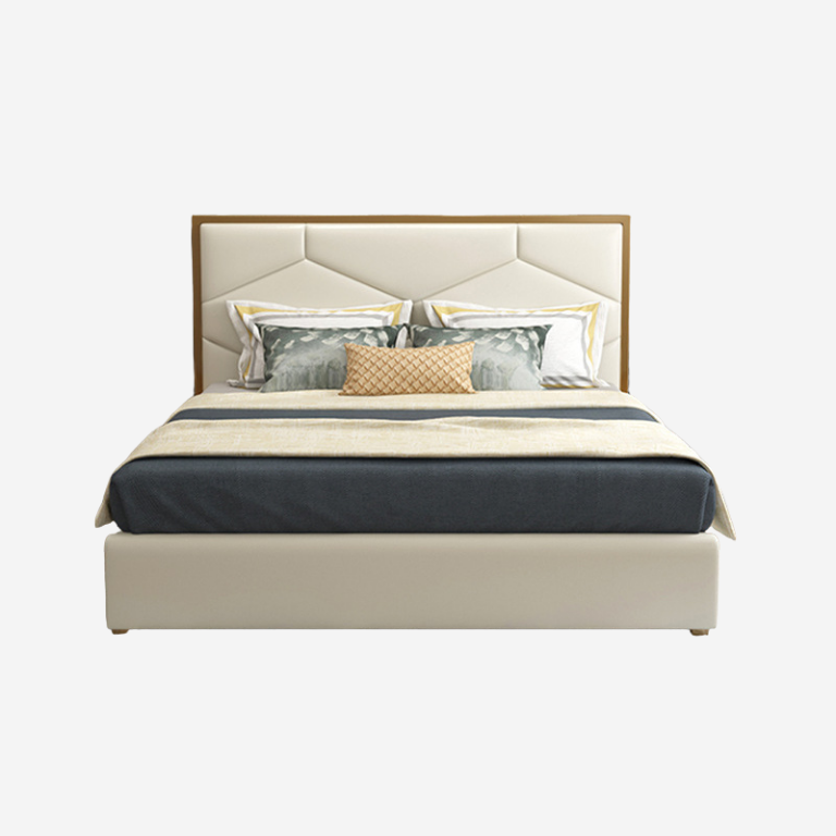 With a geometric upholstered headboard and smooth frame, the Copenhagen bed offers both comfort and architectural elegance. Its soft ivory tones pair with subtle accents, making it the centerpiece of a modern sanctuary.